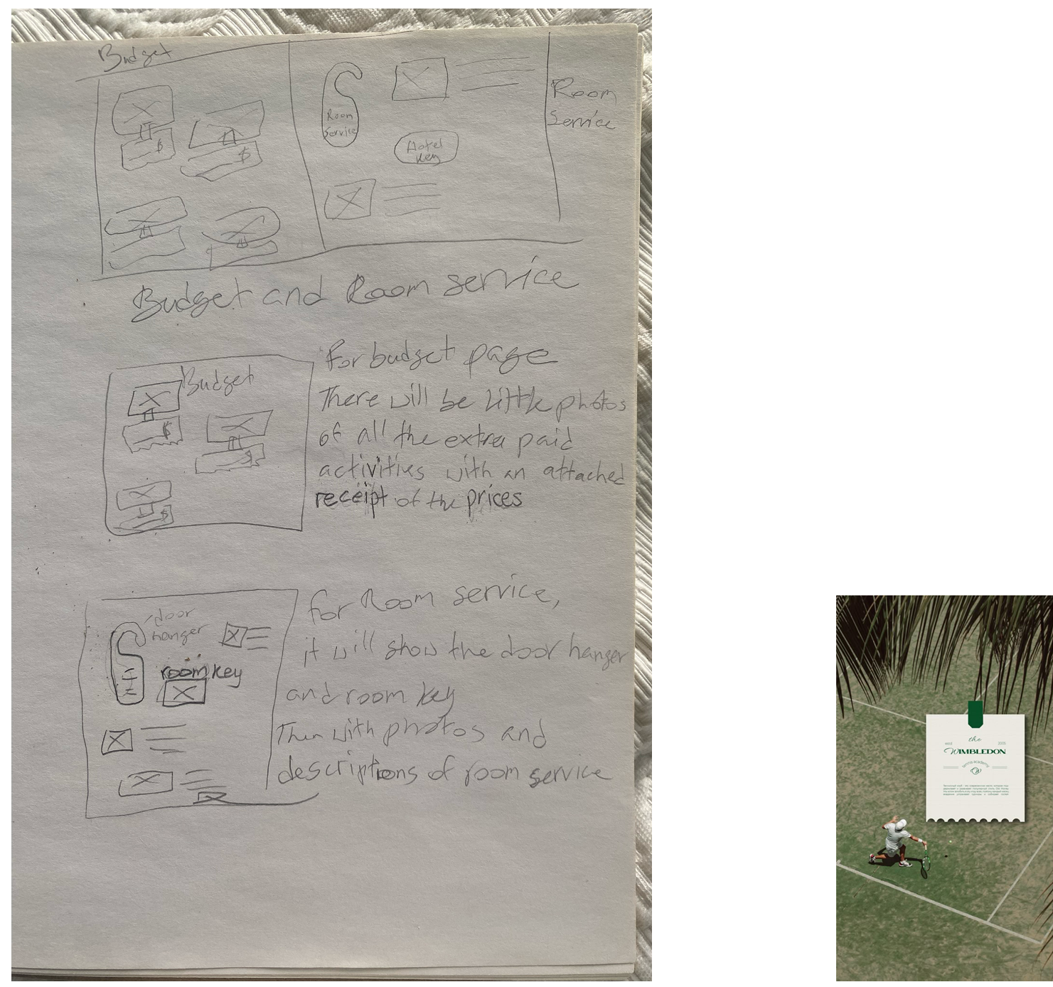 For the room service page, it will show the door hanger and room key with the hotel logo, and photos of the rooms with descriptions.