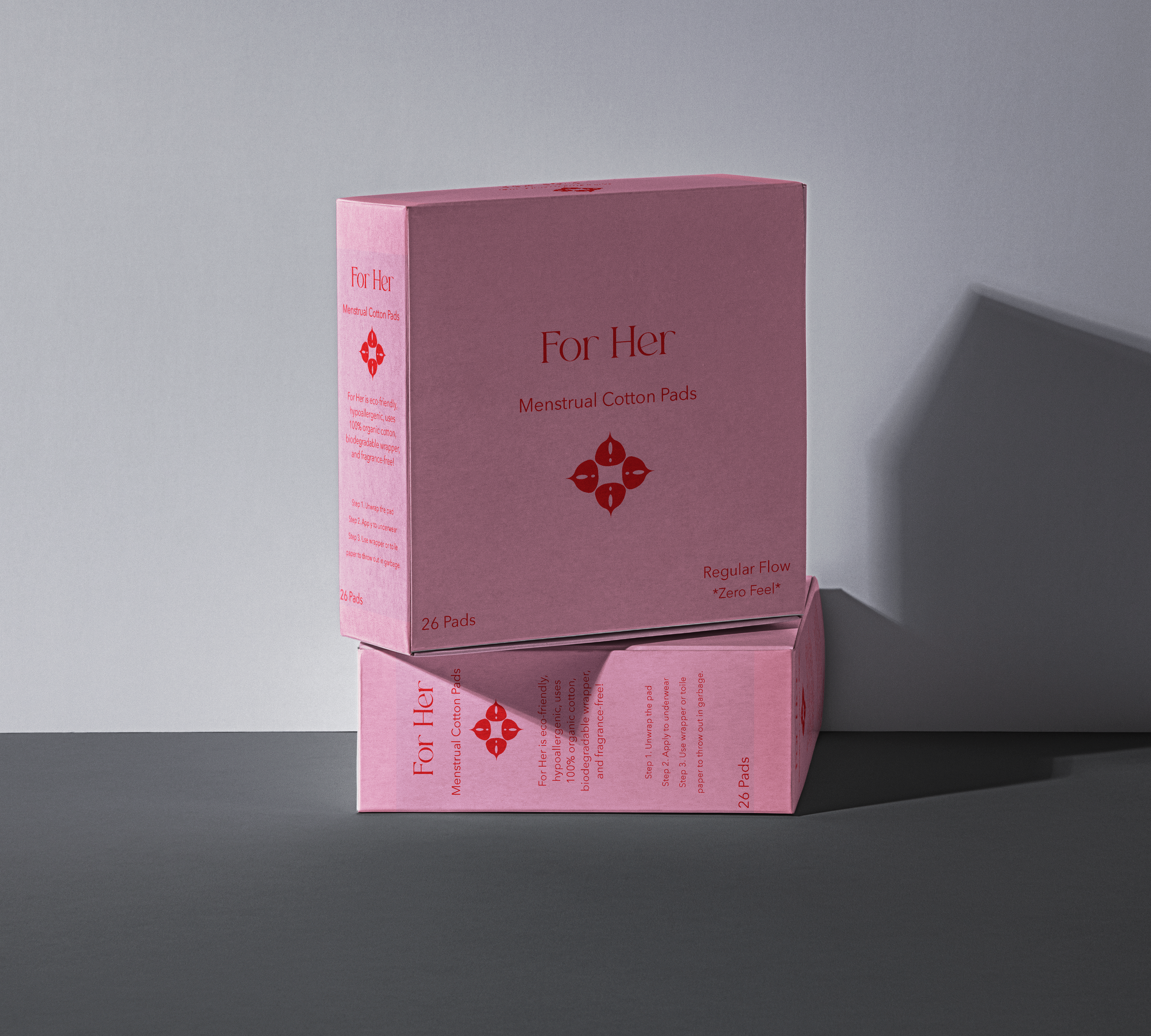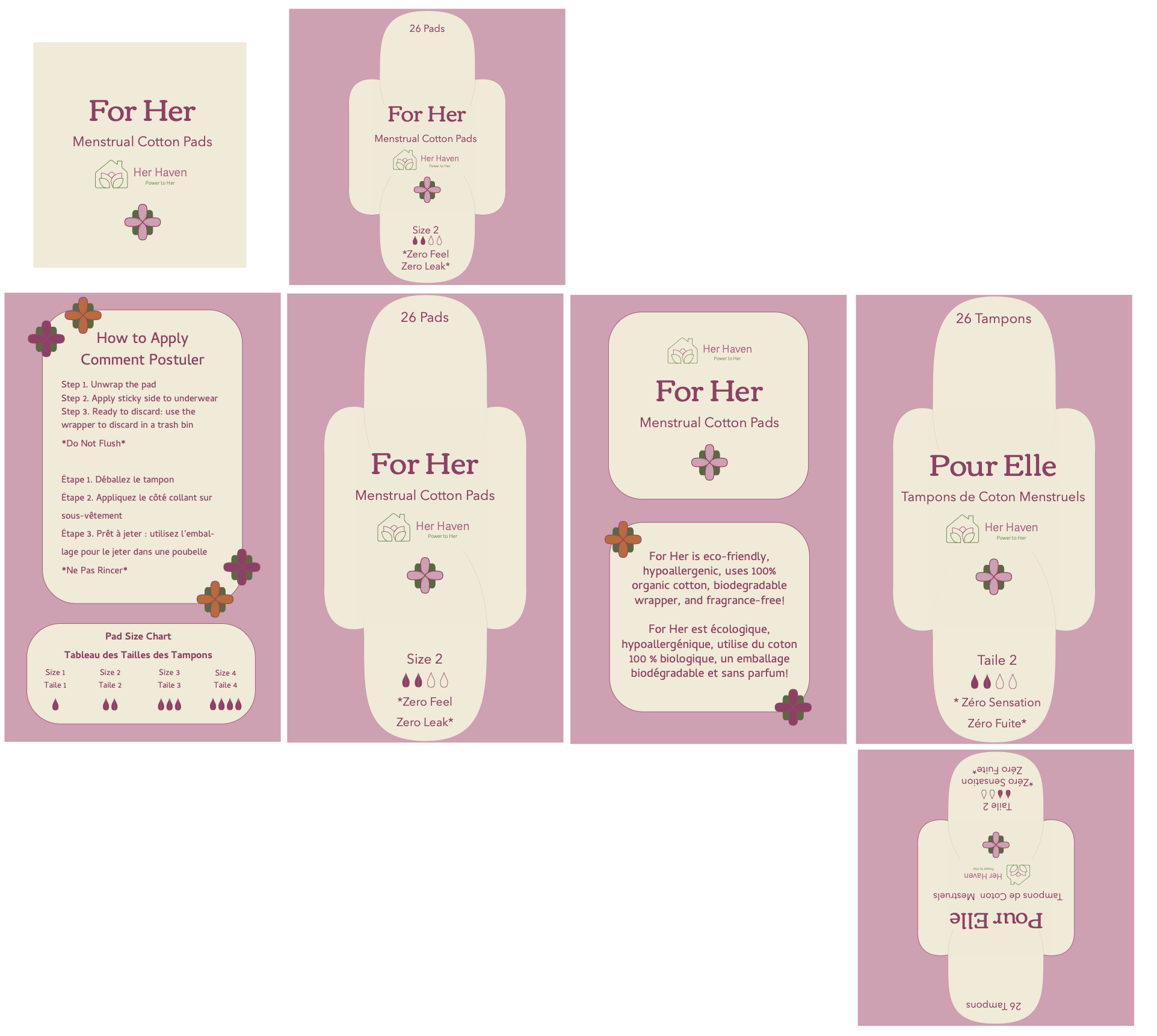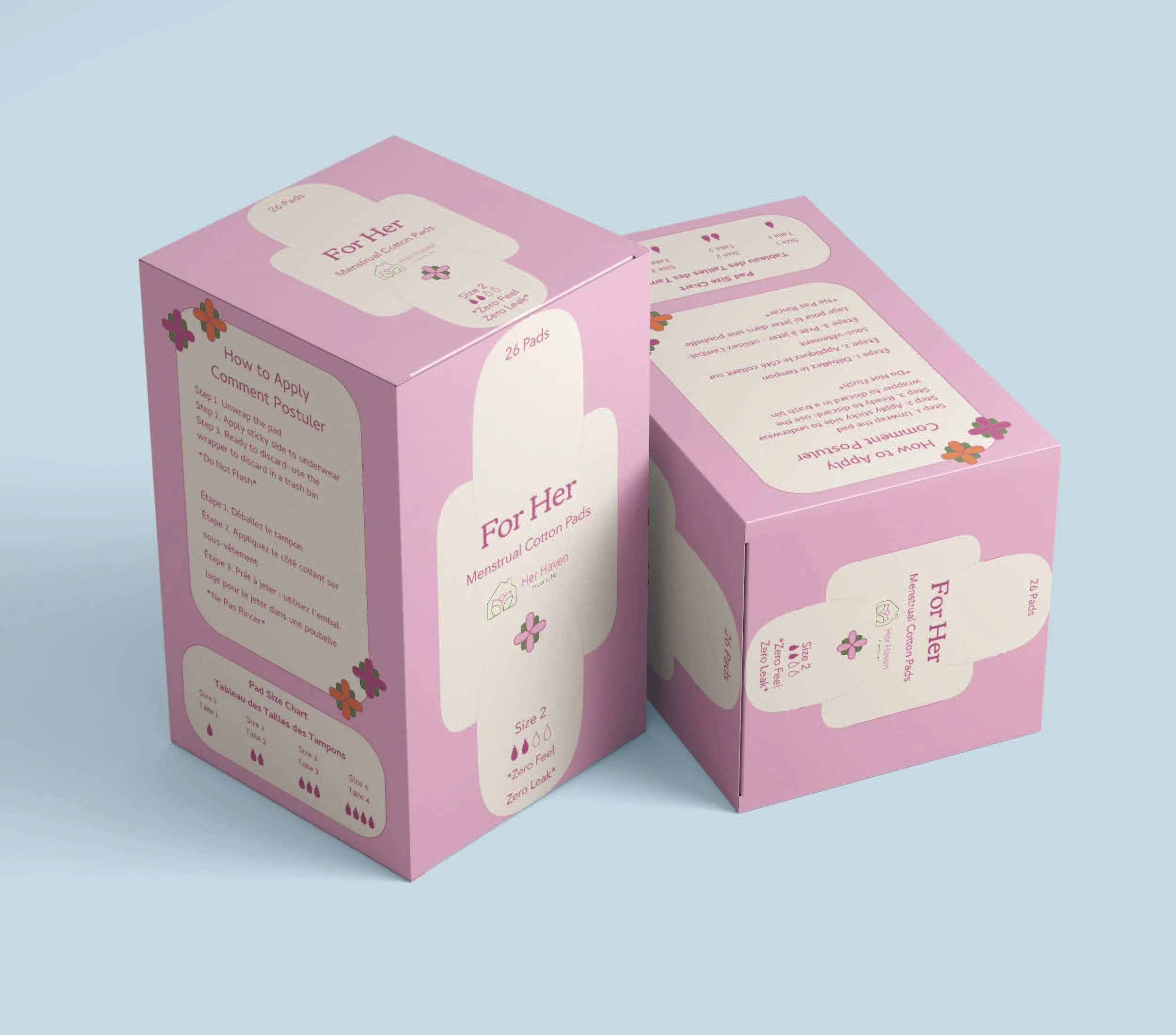I placed the pad symbol to the back for better contrast with the pink text. I decorated the packaging with flowers so it looks more approachable.