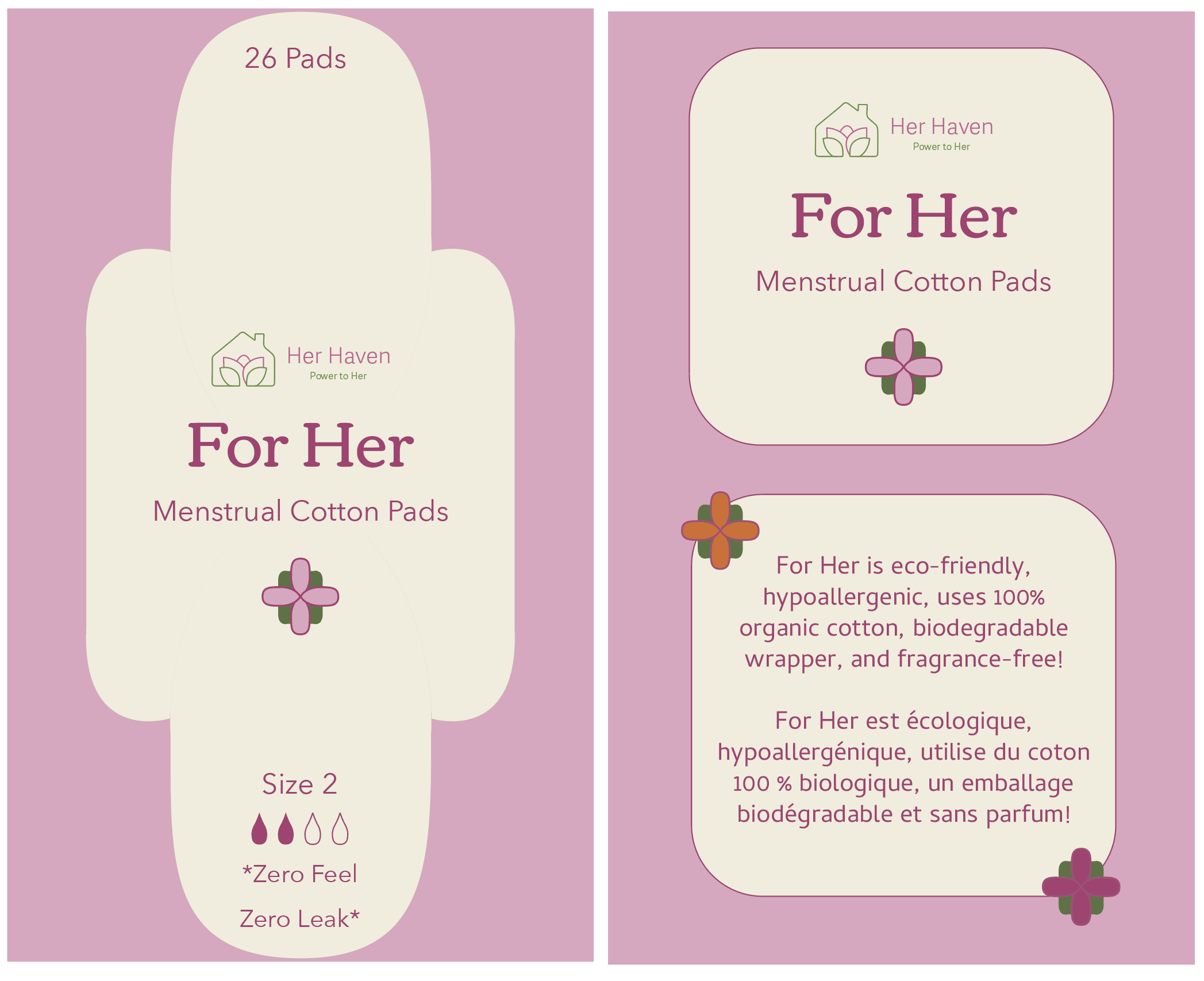 For Her Menstrual Pads are apart of a non-profit organization for women called Her Haven. Her Haven provides everyday necessities for women including menstrual products.